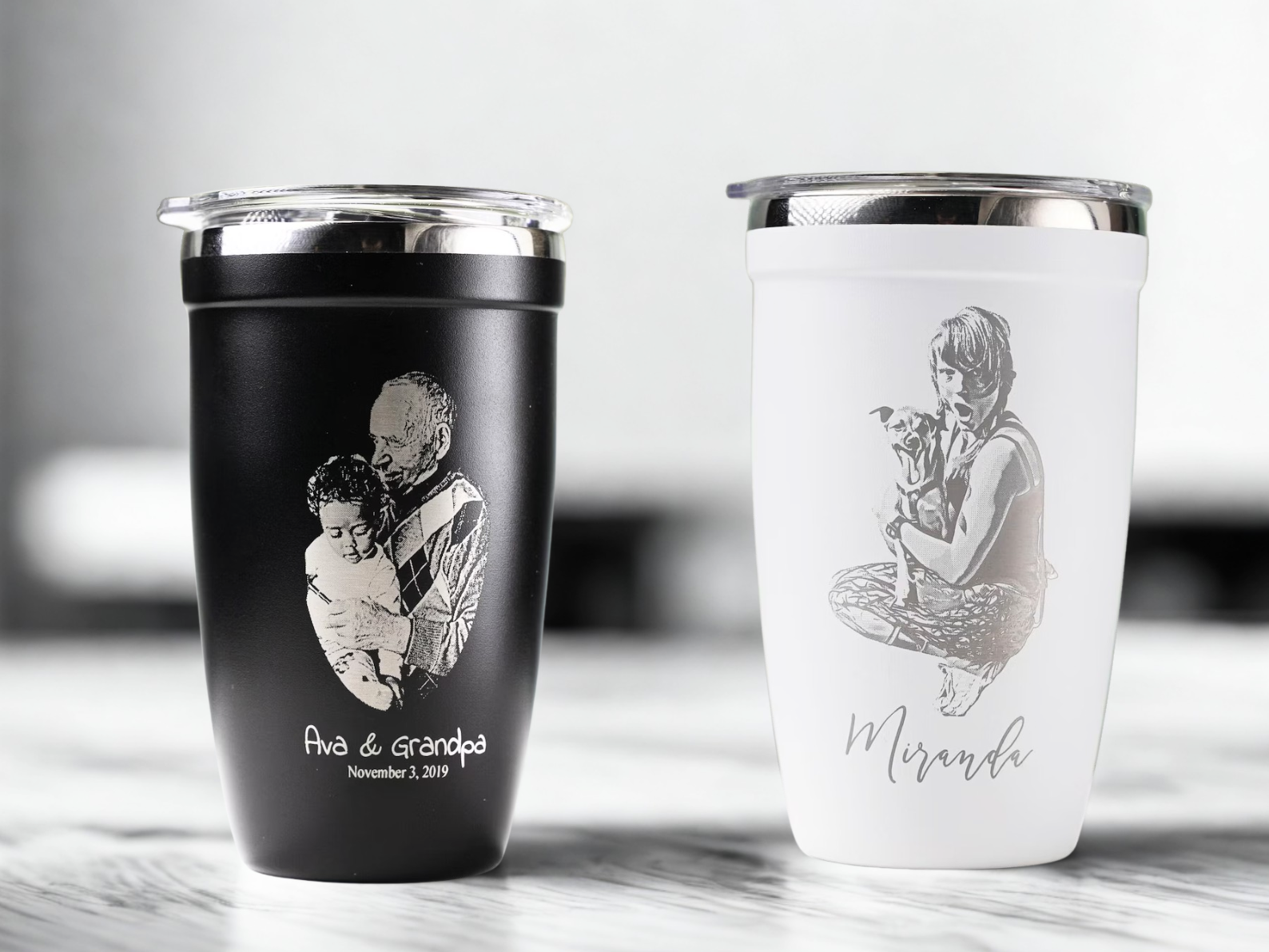 Keeps drinks hot or cold for hours—matching the best brands—while turning your favorite memories into beautifully etched keepsakes.