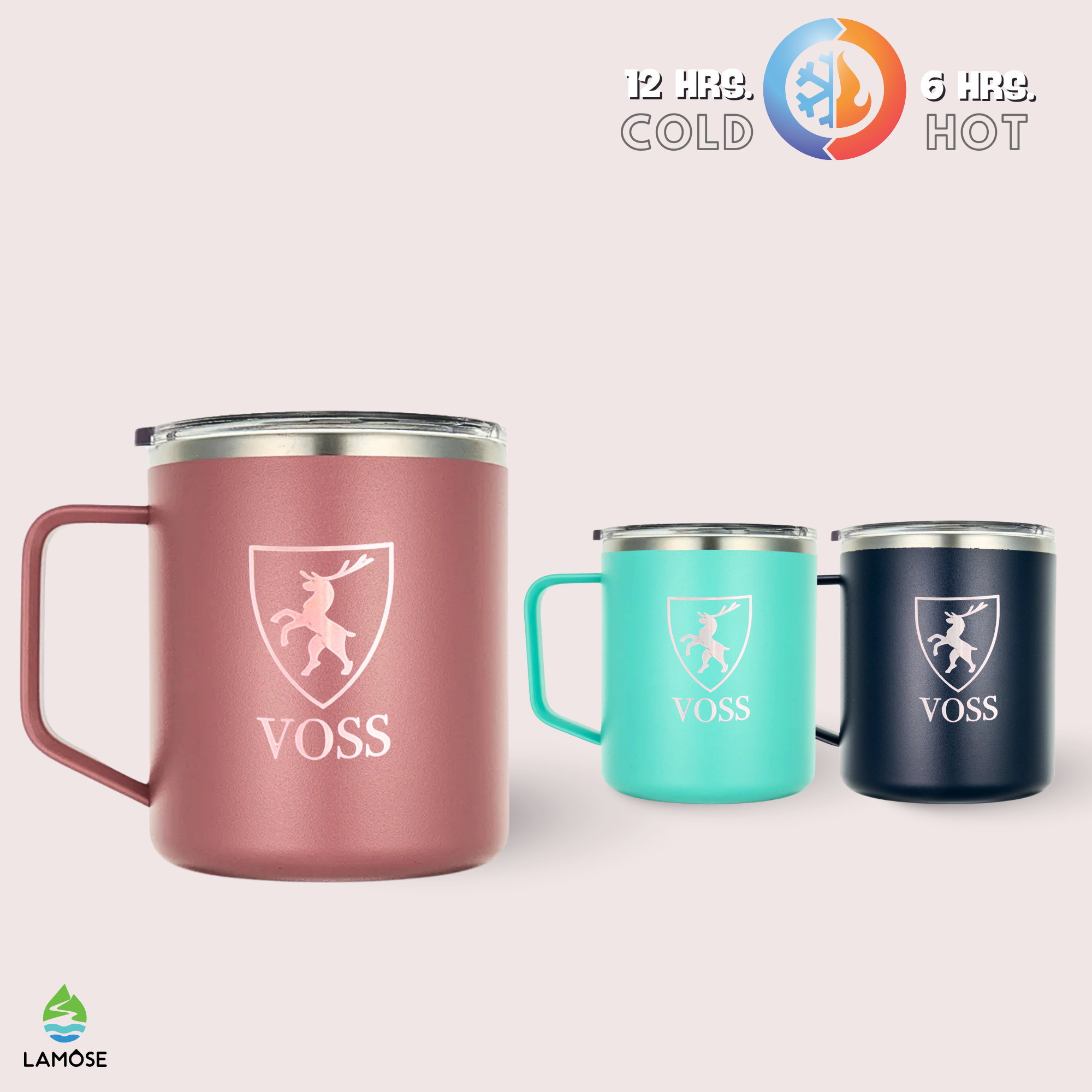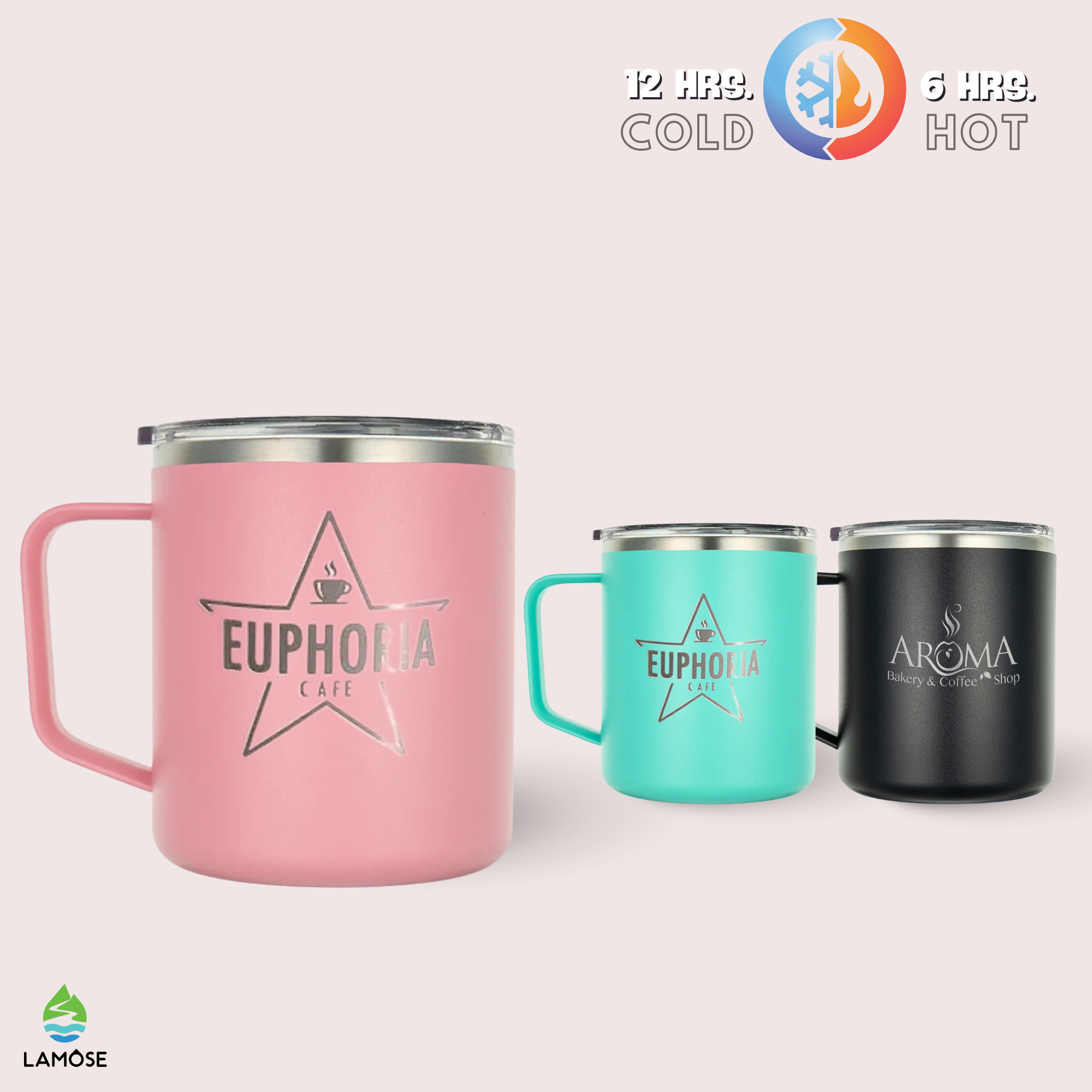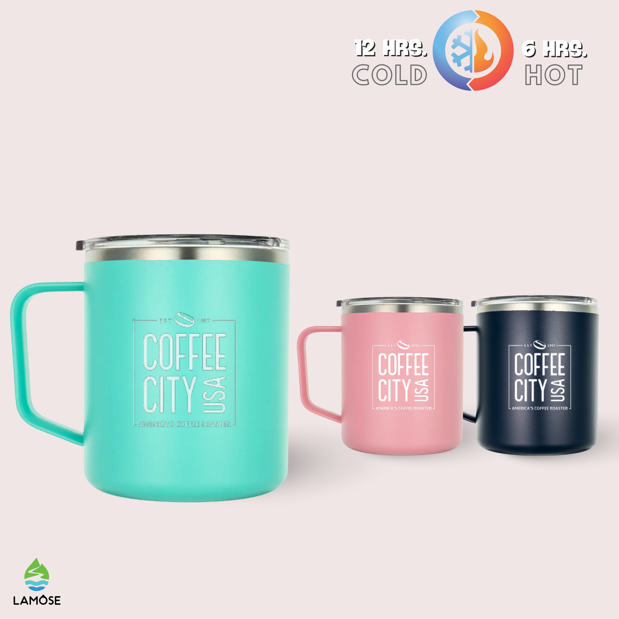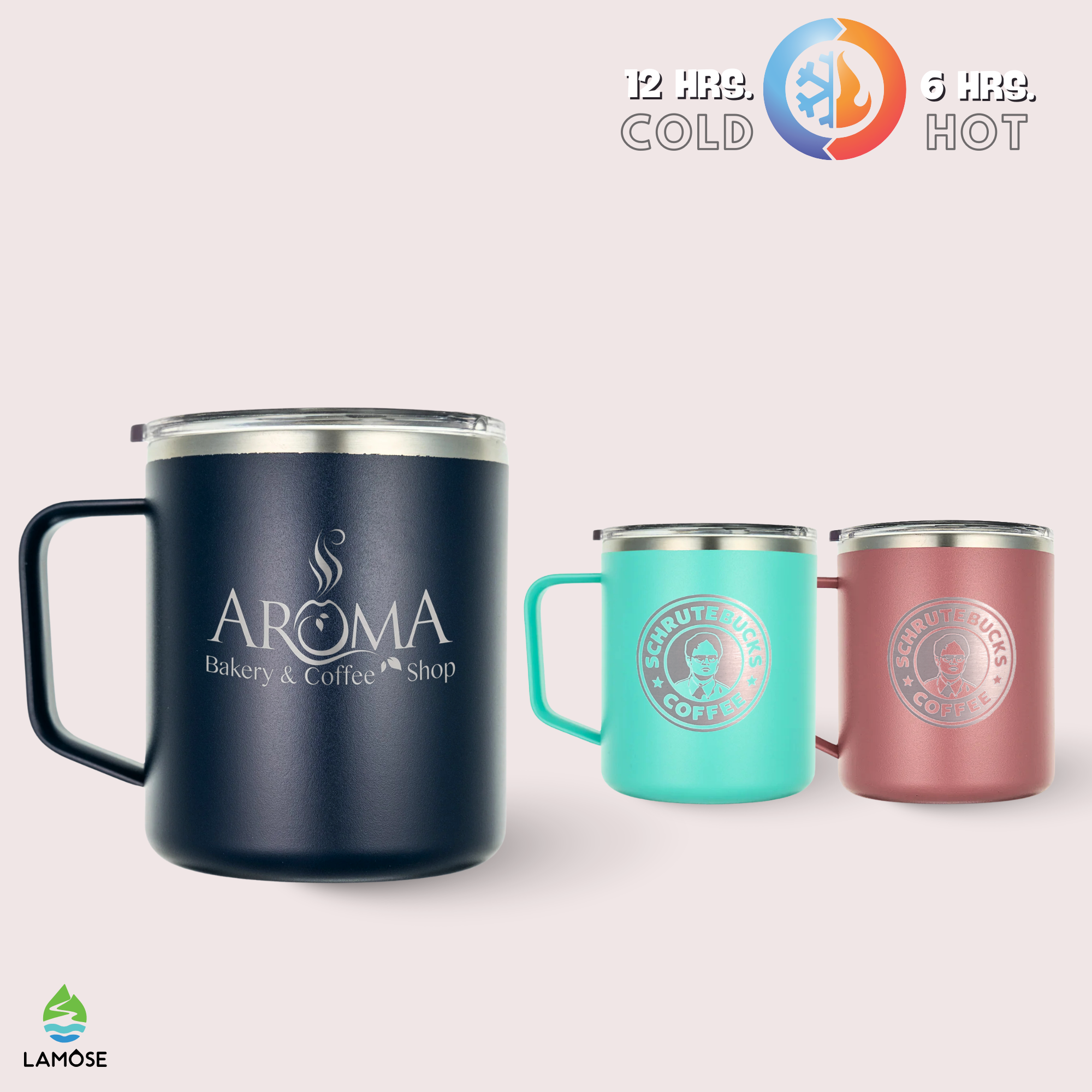 Our LAMOSE drinkware is designed with advanced thermal technology. For our hydration and beer can collections, cold beverages can stay chilled for up to 24 hours. Hot beverages in our coffee collection can stay warm for up to 12 hours. However, the actual duration can vary based on the starting temperature of the drink, the outside temperature, and how often the container is opened.