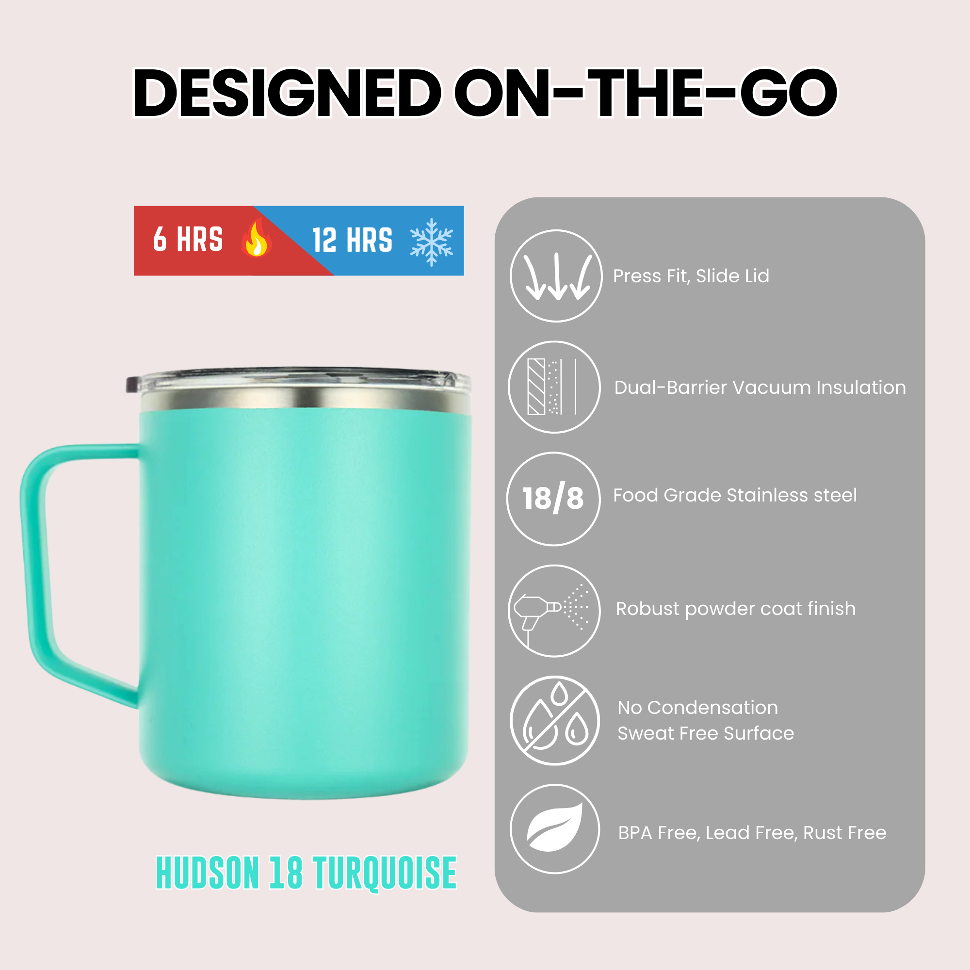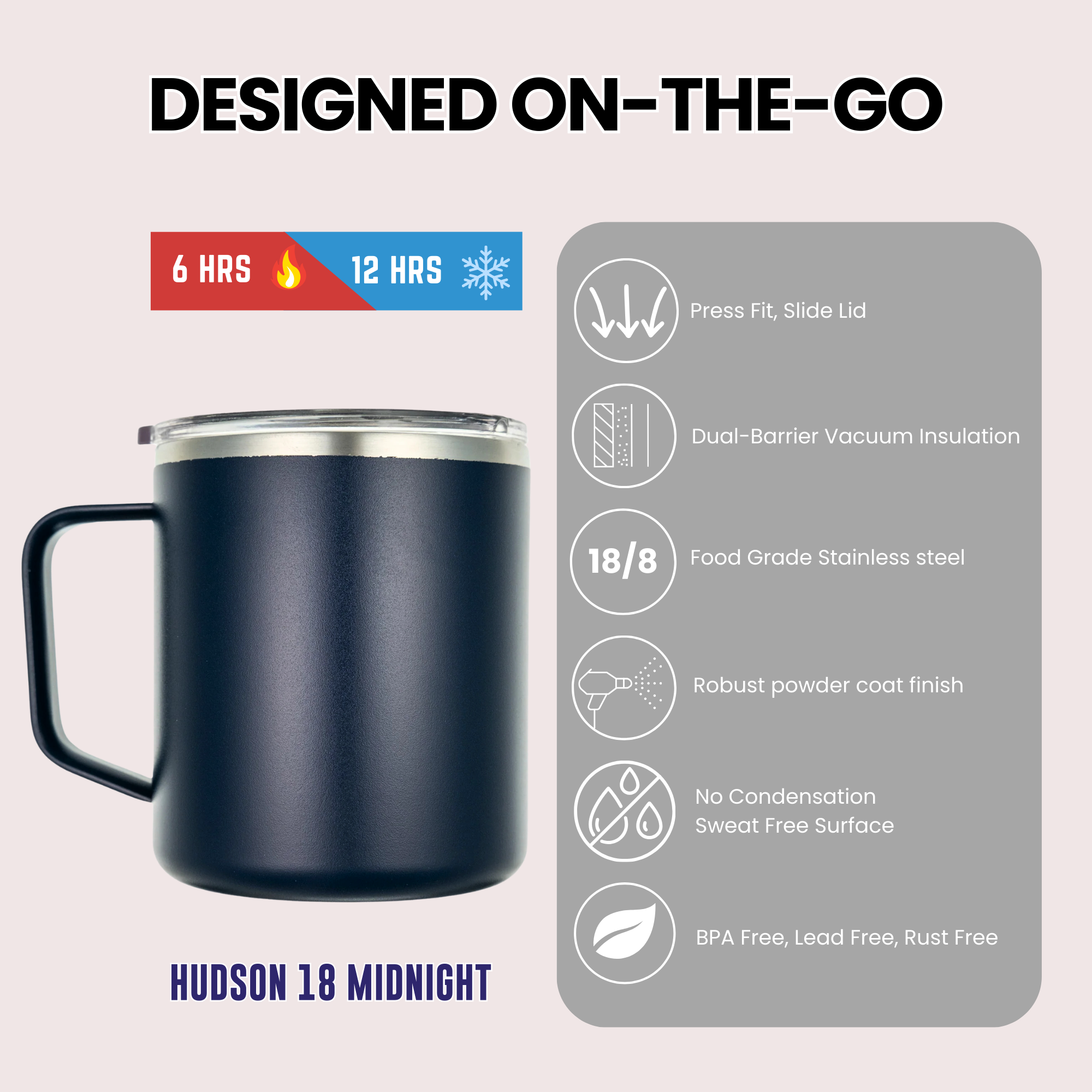 Maximize your coffee moments with our Hudson 18oz Insulated Mug, expertly designed to maintain the heat for hours and provide a comfortable and secure grip.