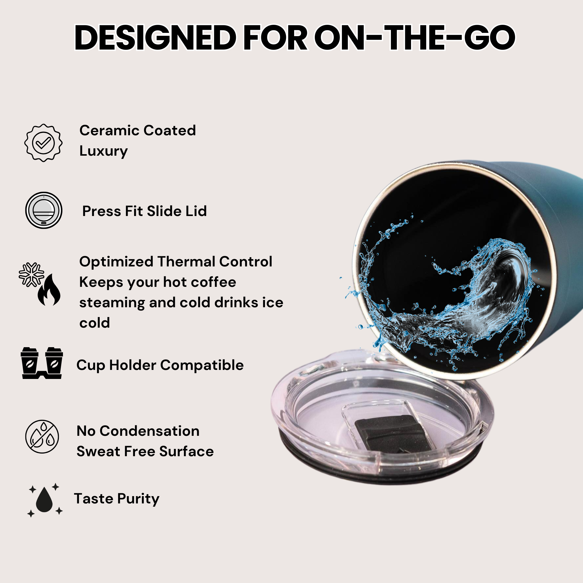 Its ergonomic design fits comfortably in your hand and cup holders, while the powder-coated exterior offers durability and style. Tagline: